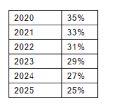 From a local perspective, we hope to see headway being made in relation to a gradual reduction in Malta’s corporate tax rate, as we have been proposing for the last couple of months. We believe it is an appropriate time for Government to reconsider reducing the standard income tax rate for companies especially in view of the fact that Malta’s tax rate is significantly higher than that chargeable in other countries, with the EU’s average corporate tax rate being 21.3%. Furthermore, whilst the effective rate in Malta, for the shareholder could be reduced by virtue of the full imputation system and the tax refund system, where applicable, this would only apply when a company distributes profits – in the coming months and years, we would expect companies to re-invest such profits in the company and not distribute them, also due to the current economic situation. Our proposal is for the corporate tax rate to be reduced to 25% over a period of 5 years with the first reduction as follows: