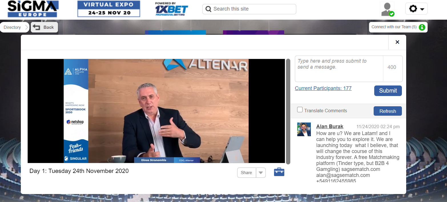 And we're back for the Sportsbook portion of our conference - first up, Dinos Stranomitis, COO for Altenar.